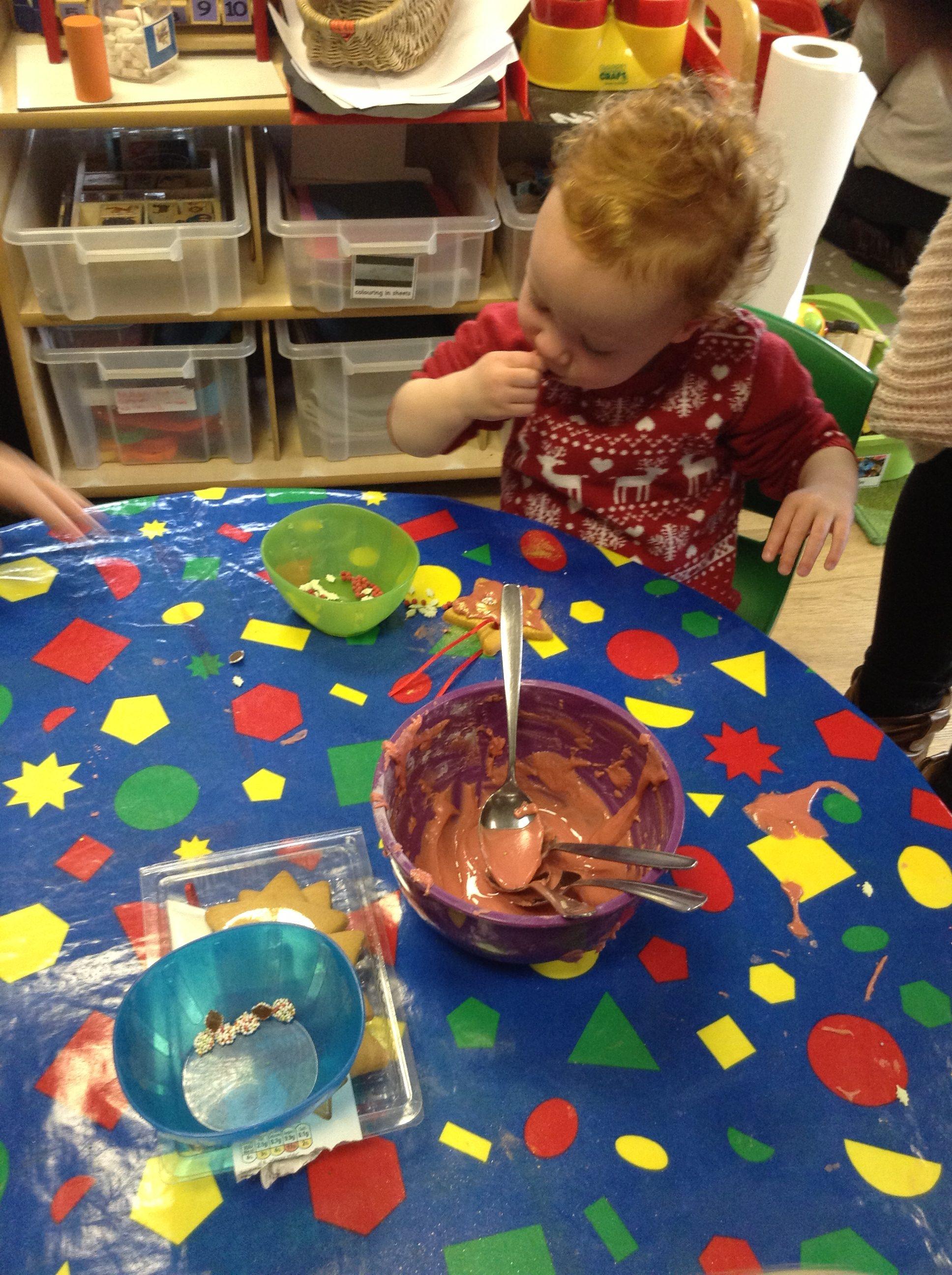 The Christmas Stay and Play Party was a lovely morning. The children enjoyed music and movement to Christmas Songs along with some bell playing. In the Art Splash puffy paint penguins were made followed by a Santa Hunt, party food and biscuit decorations.