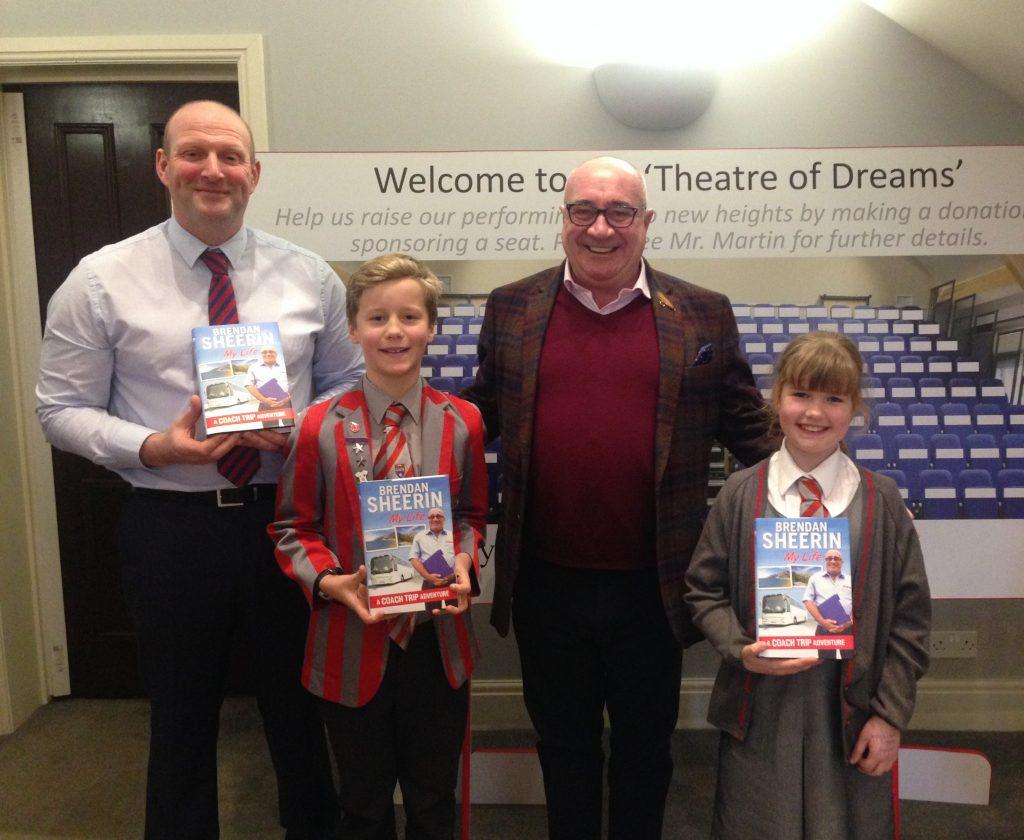 Coach Trip tour guide Brendan Sheerin visited Ghyll Royd School to unveil the ‘Theatre of Dreams’ – a fundraising initiative for retractable tiered seating in the school’s multi-purpose hall.