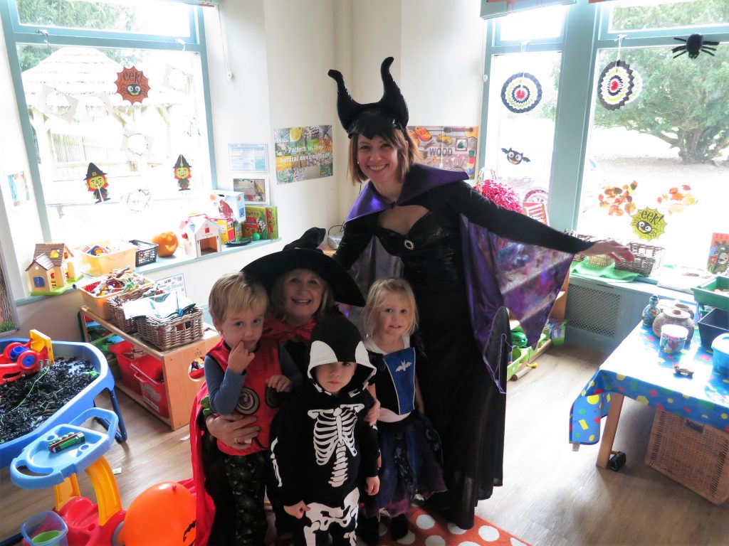 In Little Adventurers, Mrs Davis and Mrs Watson had been replaced by Maleficent and a Witch! Appearances can be deceiving and luckily these Halloween characters were just as friendly and cuddly as Mrs Davis and Mrs Watson. The Little Adventurers made ghosts using white gloves, rice, cotton wool and googly eyes! The children had to carefully scoop the rice into the glove. Their fine motor skills were tested in another activity where they had to pick up the creepy crawly bugs from the slime tub using tongs. Outside, the children created a messy potion using glitter, slime, and lots of objects that they found in the garden.