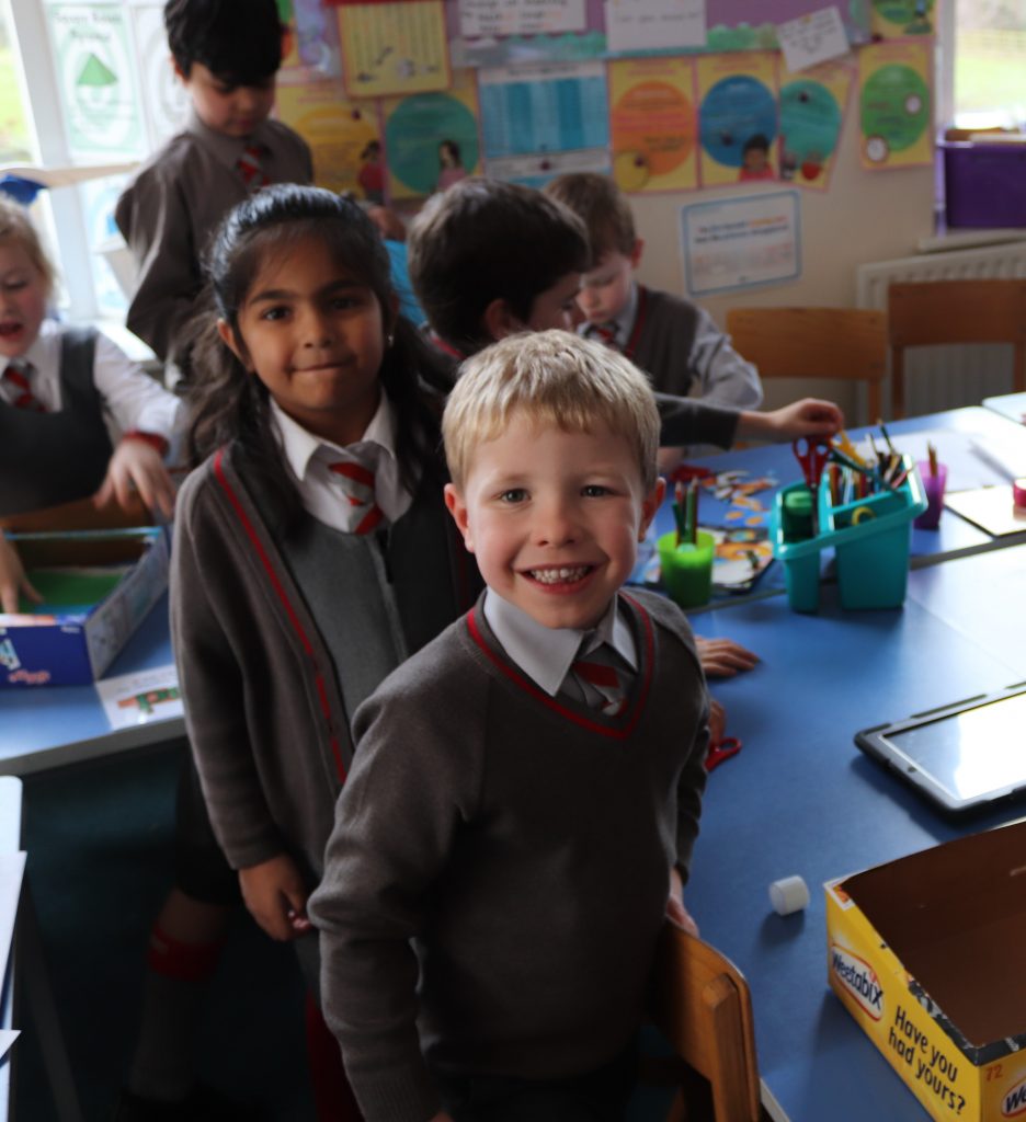 In pairs, pupils used recycled cereal boxes and paper to create a habitat scene for an animal. William and Beau made an underwater habitat for fish, and Tilly and Isobel made a jungle for their monkey including rope swings and lots of tasty bananas to eat!