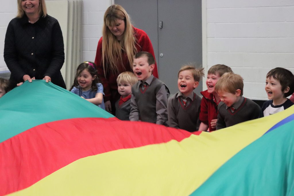Elizabeth had lost her teddy! Where could he be? We lost him and his brothers and sisters. So we went on a bear hunt! We searched high and low, crawling on the floor, tip-toeing around the room, and running around. We went into a bear cave under a giant parachute but the bear was not there. We spent one hour searching through different fun games and activities, and then we found him! He was at a birthday party. He had a cake with 1…2…3…4…FIVE candles on it. We helped him blow out the candles and then each had a piece. Matilda’s cake was chocolatey, so was Elizabeth’s! Charlotte’s had sprinkles on.